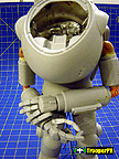 themselves. Milliput is packed inside around the pins to secure them and stabilize the arm pieces.